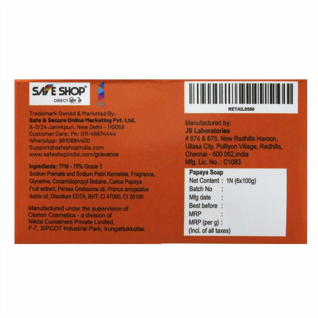 Soaps help to kill germs, remove dirt & pollutants and moisturize the skin. Additionally, papaya soap is rich in vitamin C, an antioxidant that can reduce irregular pigmentation and stimulate collagen production. It also contains vitamin A, an important nutrient for the skin. It promotes the production of new skin cells, and may help reduce dark spots, blemishes, and scars. The mild soap base will soothe the skin leaving it feeling soft and smooth. Vitamins and minerals brighten skin tone and natural moisturisers calm dryness away.